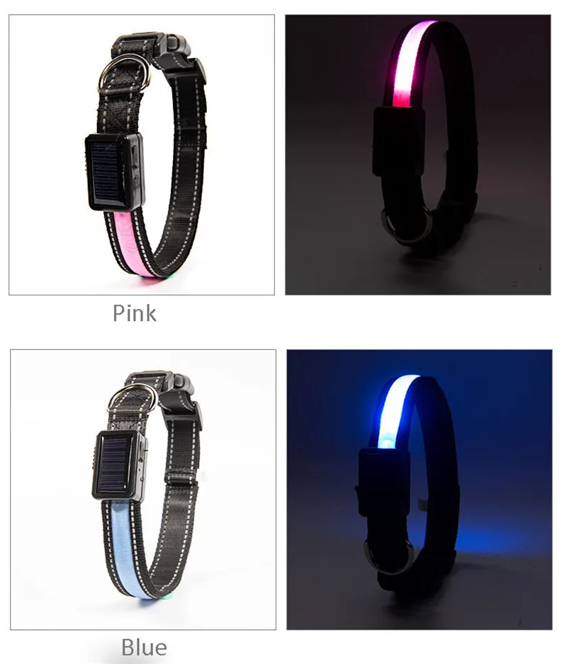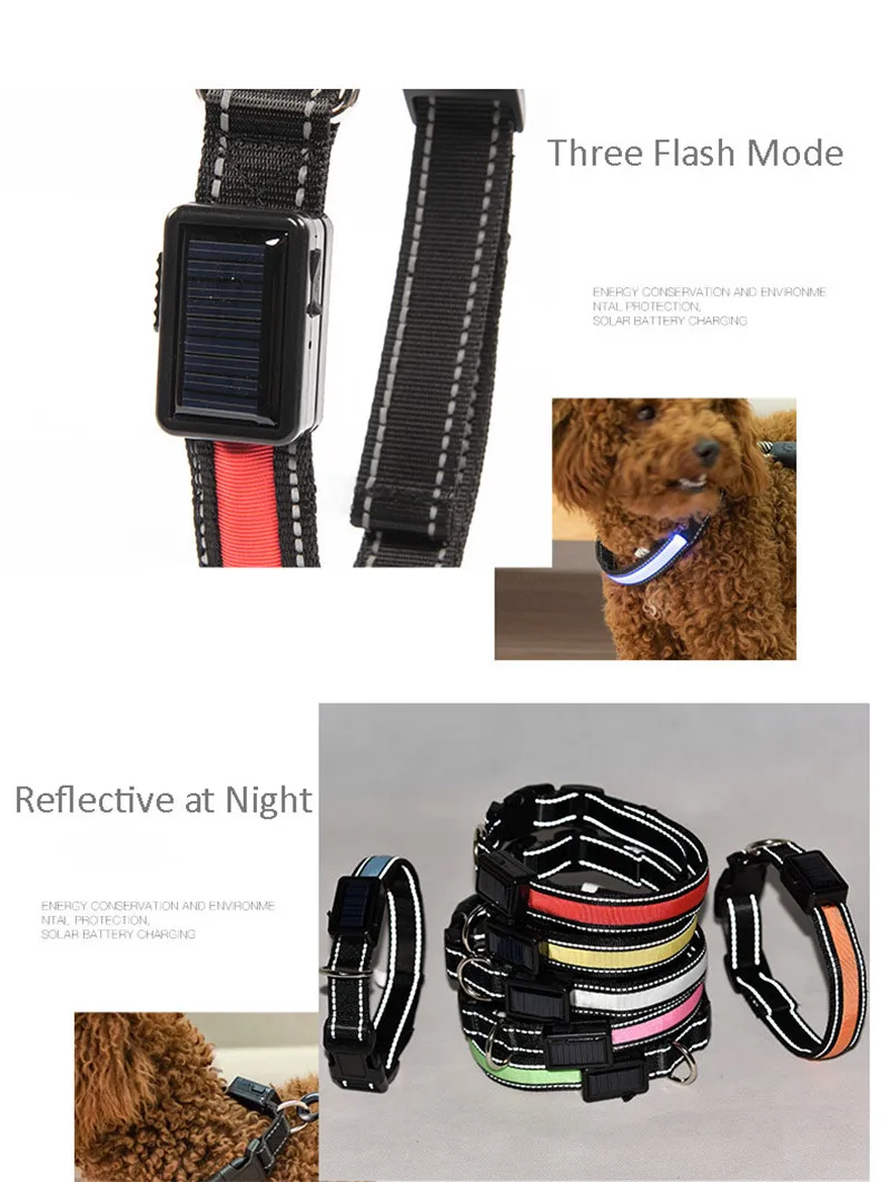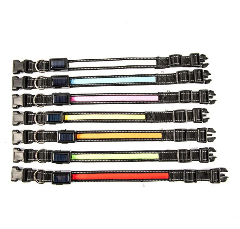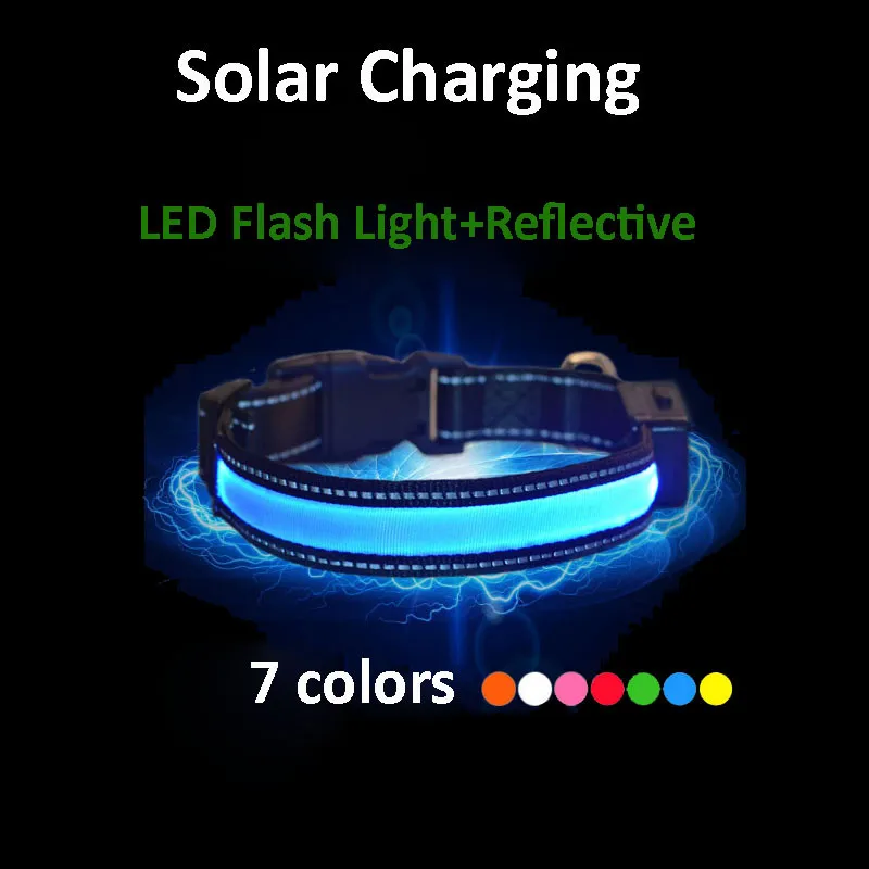 Solar Energy Charging Dog Collar LED Flashing Light Smart Safety Glowing Necks Collars Night Safety Pet Outdoor Collar 10pcs/lot