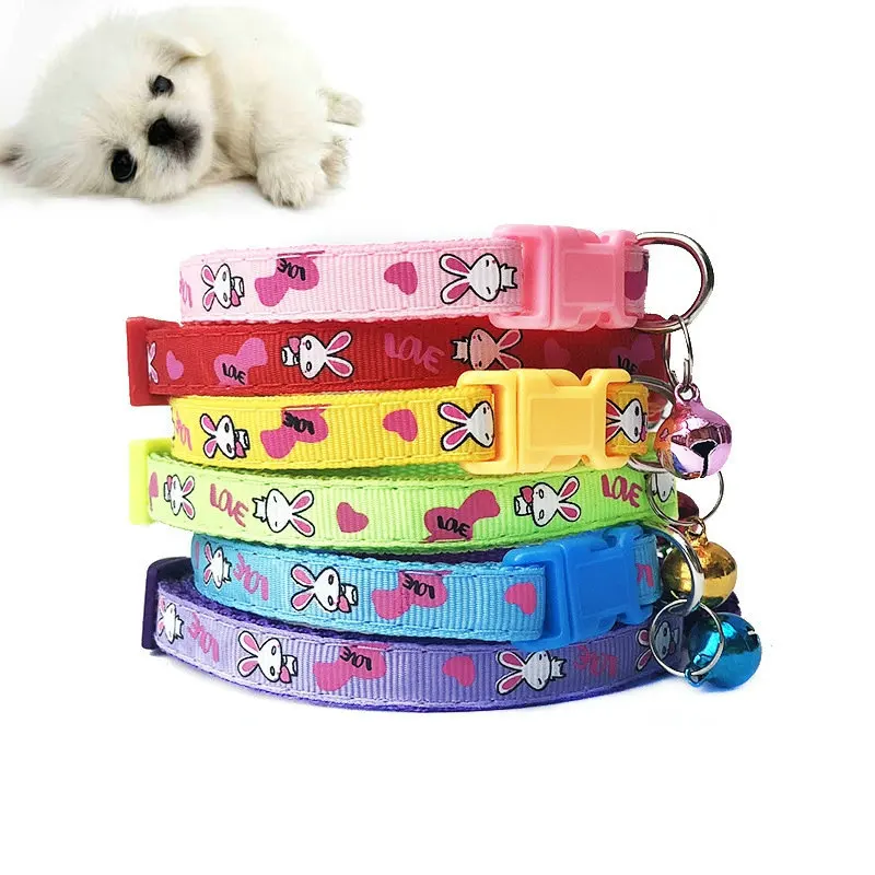1Pcs Dog Collars Cute Lovely Pets Adjustable Necklace Collar Polyester Fashionable Puppy Pet Collars with Bells Cat Dogs Collars