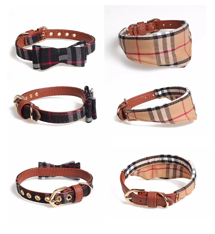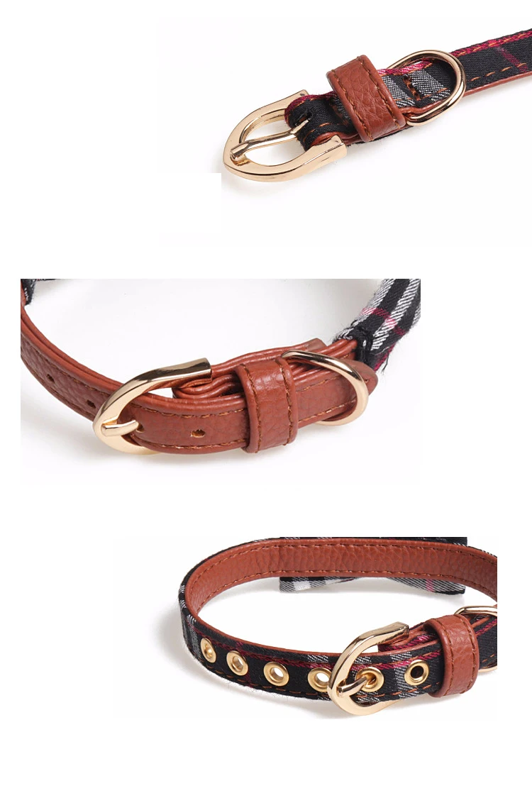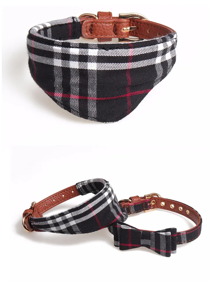 HELLOMOON basic S M L Black Golden New british plaid traction set with leashes bow dog scarf pet dog collars
