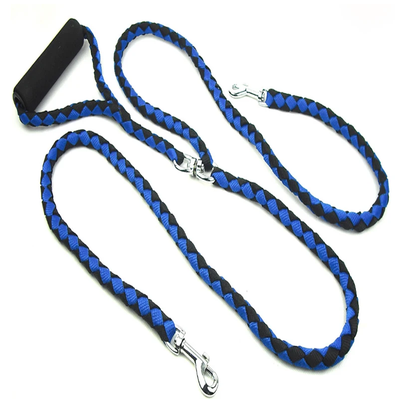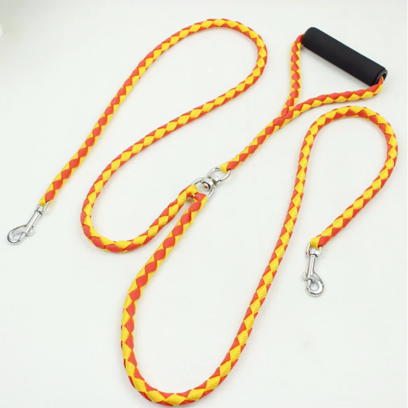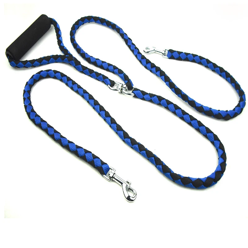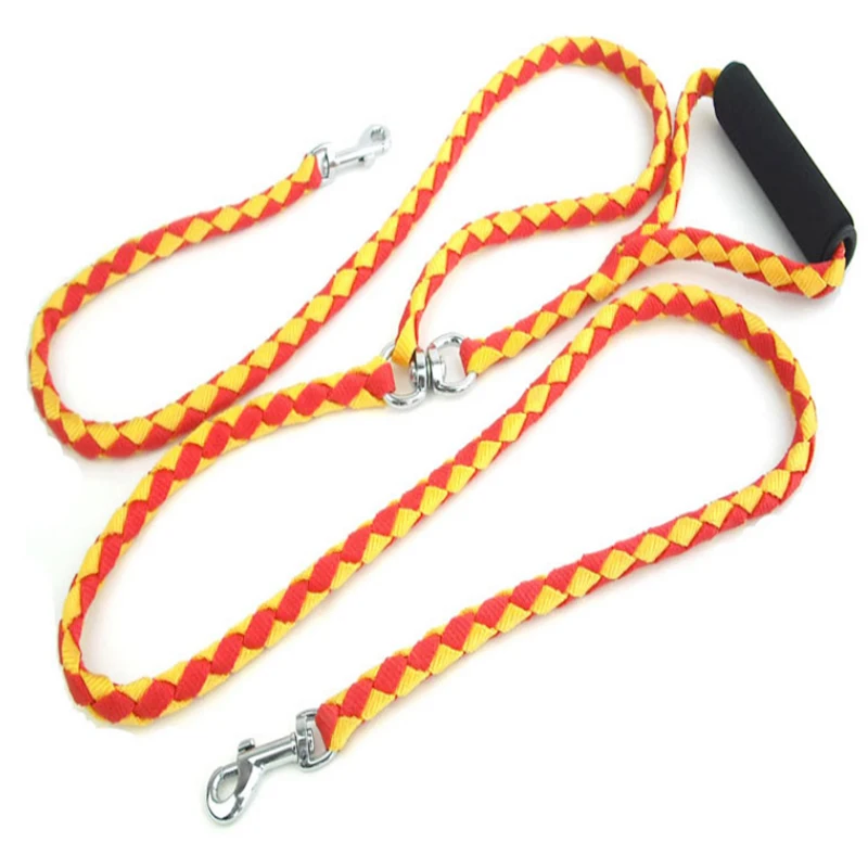 High Quality Nylon Weaving Durable One Drag Two Dog Leash While Holding Two Dogs Double-headed Pet Dog Traction Rope Dog Leashes