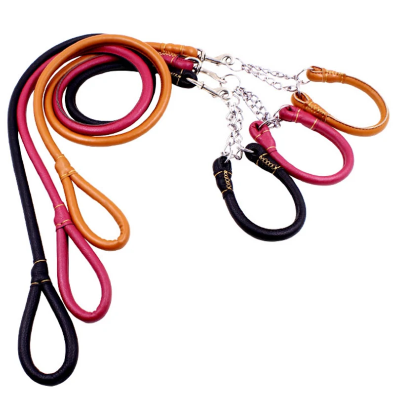 SM L size Pet dogs Dedicated Dog Leash Dogs Collars Leashes Chain For Large Dogs Round leather PU leather material traction rope