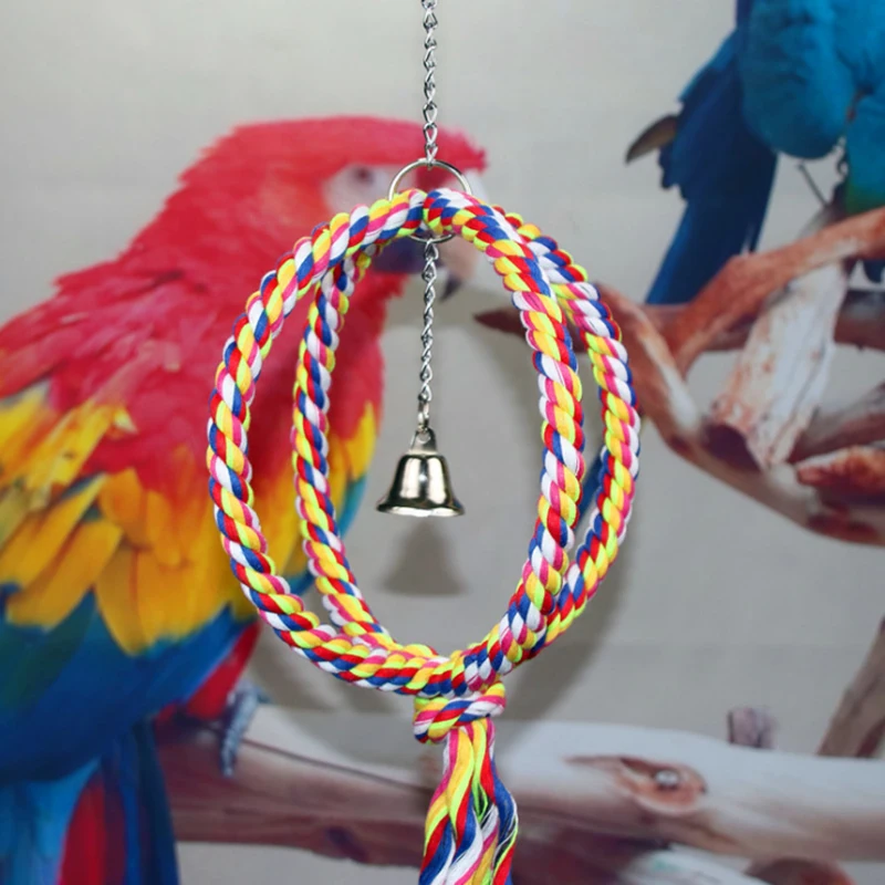 Pet Bird Toys Round Circle Climbing Cotton Rope Toy Bite-resistant Swing Standing Toys for Parrotlets Bird cage accessories toys